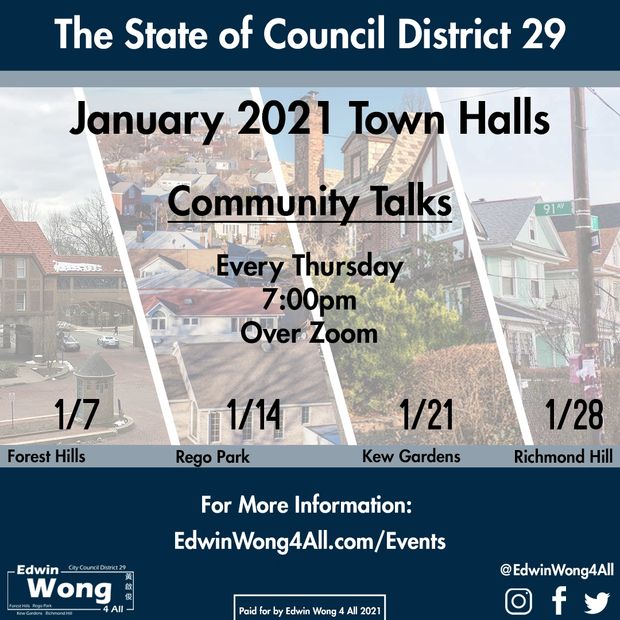 City council candidate, Edwin Wong will be hosting "Community Talks” Town Halls